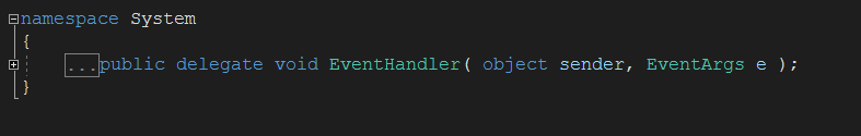 이렇게 object 타입, EventArgs 타입을 매개변수로 가지고 반환값은 void인 delegate로 정의가 되어있다.