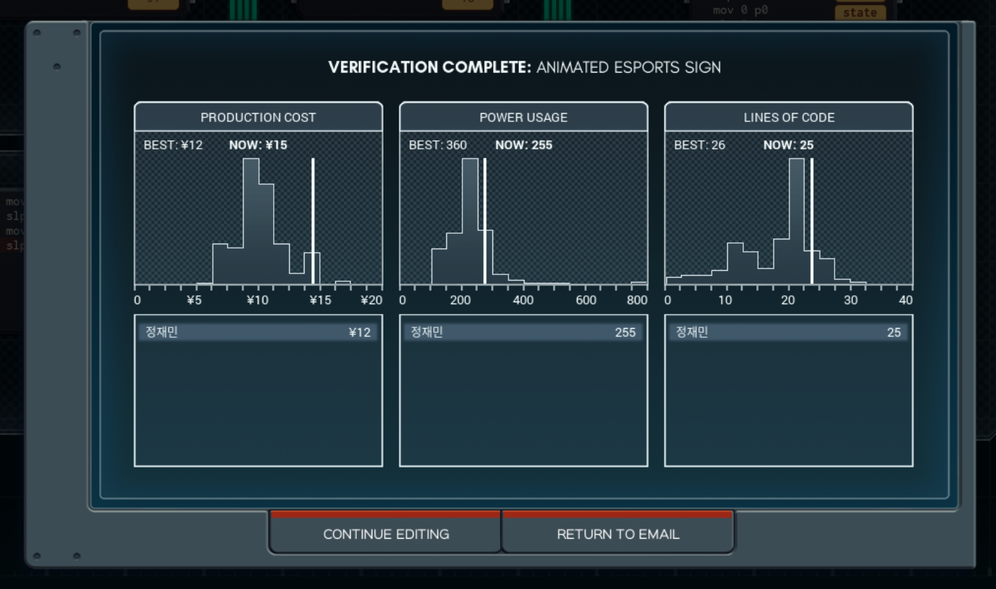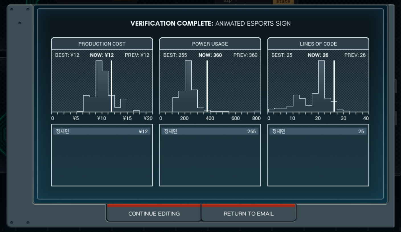 클리어는 했지만 검증 결과는 썩 만족스러워 보이진 않는다. 오히려 처음에 만든 미개한 방식이 코스트를 제외한 모든 면에서 더 나은 성적을 가진다.... 하핫